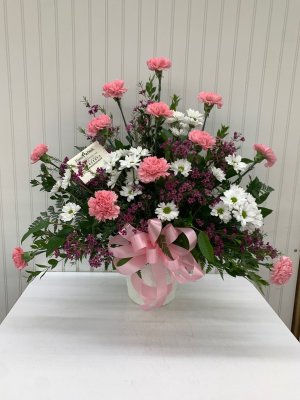 Thank you for your talents in designing this beautiful arrangement to honor a remarkable women! It was more than we expected!
