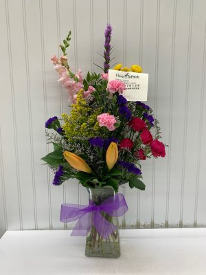 We had an intimate family gathering for a funeral. Flower Patch was very flexible adjusting the standard spray to what was perfect for us. They sent me a photo before delivering to make sure I was pleased. The arrangement is beautiful and creative. On family member described it as “spectacular”. It arrived fresh when they said it would. They will be my Go-To florist from now on!