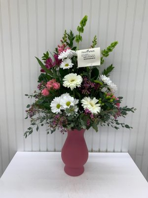 I have ordered this arrangement several times and each time I have been very pleased with how it looks, how it was delivered, and I like getting the photo. I'm not hoping for many more funerals in the future, but if I do have any, I will once again order this beautiful arrangement. Thank you.