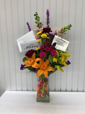 Flowers are beautiful. Got them for my Sister on her birthday. She really enjoyed them. Delivery went perfectly.