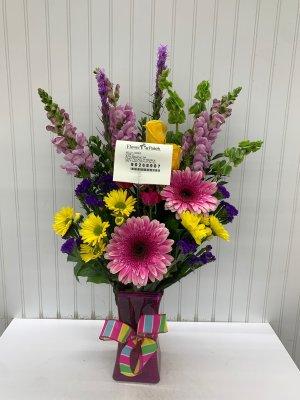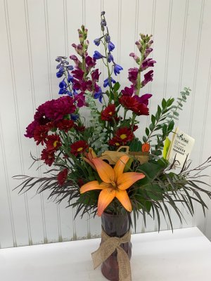 This is my Thanksgiving gift to my 103 year old cousin. The floral arrangement is beautiful. Thank you Flower Patch.