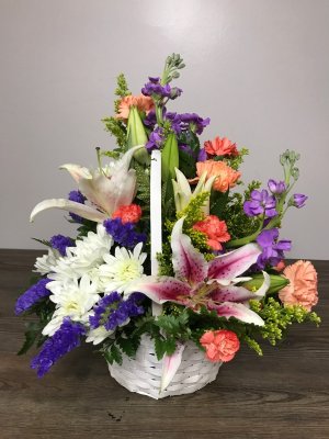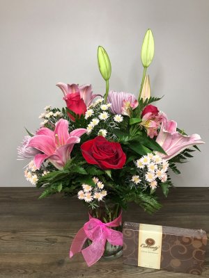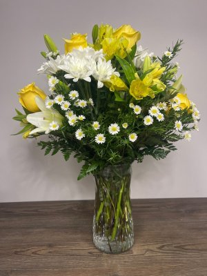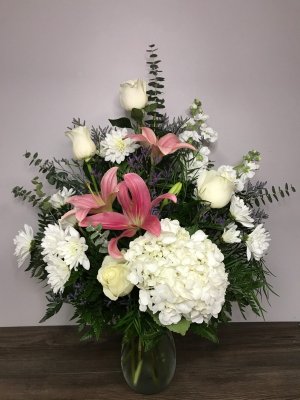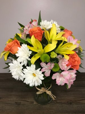Beautiful arrangement, fresh flowers, delivered on time, will order again from them. Thanks, nice company