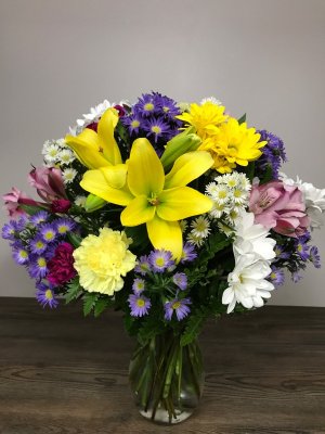 Lovely arrangement ! My dear friend loved it !! Great florist - got a call and confirmation of arrangement !!! Excellent service !!!