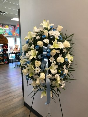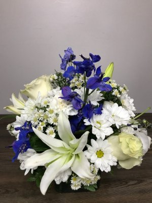The flowers were beautiful! I wish there was more blue but it was really Gorgeous. Worth what I paid for it. I really liked the fact that they sent a pic in advance. I recommend Flower Power to everyone for any occasion. The owner was very courteous and empathetic.