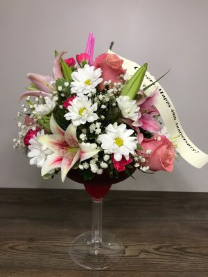 I received excellent service via long distance phone ordering this morning, James was very polite and efficient. The arrangement is very nice, the only complaint I have is I specifically ordered the "martini" glass & got the margarita glass, not a big deal though, my Sister & Husband loved it! I did love getting a preview photo of the arrangement. Thank you!