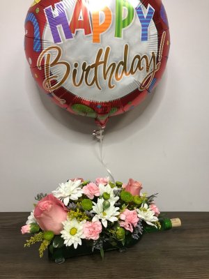 The flowers were perfect and delivery was great as always! The individual that received them just loved them. The only thing we had a little problem with is the clear legs were falling off the bottle that held the flowers., so it was tipping over. But still love Flower Power!!