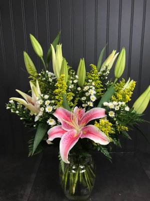 "Flowers were beautiful. Arrangement was wonderful flowers were fresh and my wife loved them. Service was awesome I needed an emergency Cheer up for my wife I called and they made it happen the same day. Thanks "