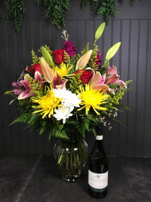 On time and improved when supply of the ordered wine was not available. Love working with Flower Power. Recommend making site be duplicated in a downloadable APP.