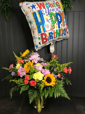 The birthday arrangement from Flower Power was absolutely beautiful. Exactly what I wanted! A nice variety of colorful flowers and a perfect happy birthday balloon! I couldn't be more pleased with the work and creativity of Flower Power. Thank you so much for your delivery service as well. It's also nice to receive a picture of the arrangement before it is delivered. I really appreciate OK I would highly recommend Flower Power if you want to send a beautiful arrangement to a special someone.