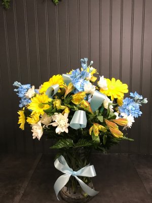 Absolutely beautiful work. The flowers are gorgeous and exactly what I wanted. The teddy bear is better than I expected. This business was a pleasure to work with. The representative on the phone was over and above helpful. I would use this florist again. I have never recieved a photo from any other shop before. This place is impressive!