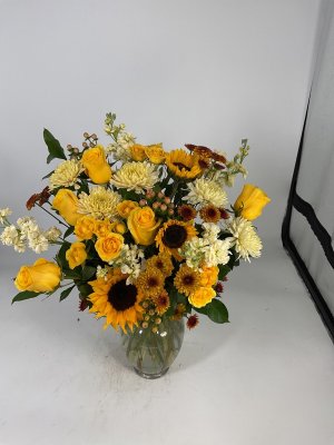 Marsha LOVED yellow roses, so I LOVE this arrangement. Thank you for this arrangement.