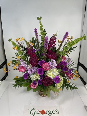 We are happy to hear she loved her arrangement! Thank you for the kind review and for trusting the team at George's Flowers!