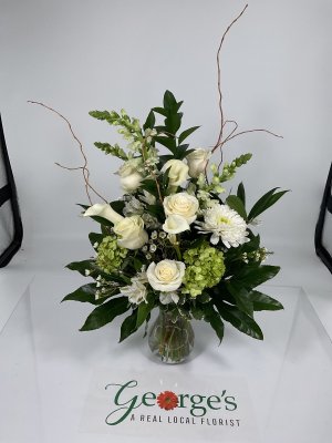 George's floral shop was very accommodating is substituting too fragrant flowers in the arrangement with others that would be better for a recipient who is sensitive. Very friendly too.