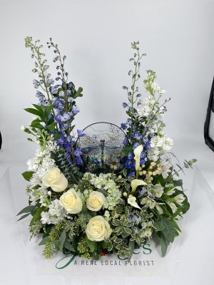 It looks absolutely beautiful! I appreciate receiving a photo of the finished product. I love George's Flowers!