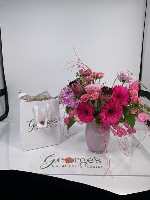 My friend always enjoys receiving flowers from you. George's is the best place in town to send arrangements. Thank you. You guys never disappoint!