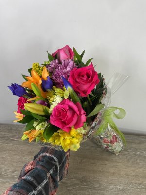 The bouquet was beautiful and arranged so that the recipient could easily put them in a vase and have a wonderful floral arrangement. GREAT JOB!