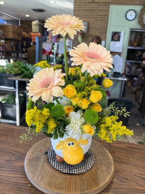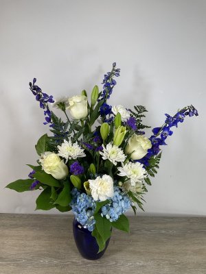 Lovely and unique arrangement. So appreciate knowing I can always rely on George's Flowers to deliver stylish quality. Also value being able to order from a live person who truly listens and offers professional input on selections.