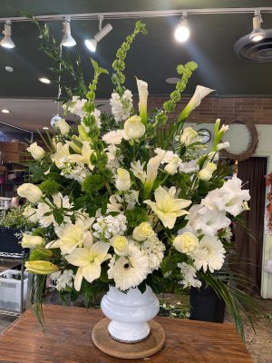 This flower arrangement is absolutely gorgeous! Thank you, George, and your entire staff, for creating (and delivering on short notice!) this memorial to my friends' father. It's a comfort to me knowing George's Flowers will always hit the mark!