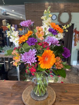I live out of state and needed an arrangement for a special birthday. When calling the shop the customer service was excellent. They sent me a photo of the flowers before they went out for delivery and I was very pleased with the overall arrangement. Very pleased and would use them again!