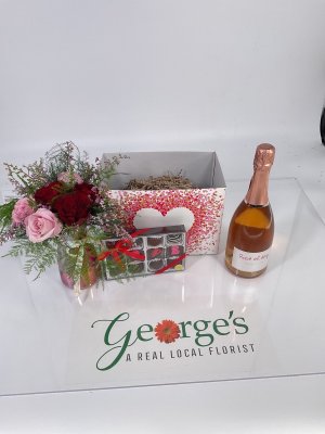 Very nice. I've ordered from George's for years and have never been disappointed. I hope the chocolates are as good. Even my Maltese has the received flowers from George's. Getting a photo makes it even better.