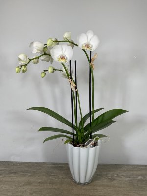 The plant was beautifully adorned with a red ribbon for Christmas and I know it will bring joy to the recipient for years to come. I am so glad you provide a photo of your flowers and plants before delivery; it's great to know I'm sending something lovingly arranged and carefully delivered. Highly recommend George's Flowers!!