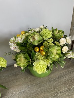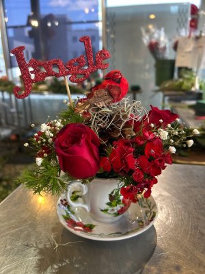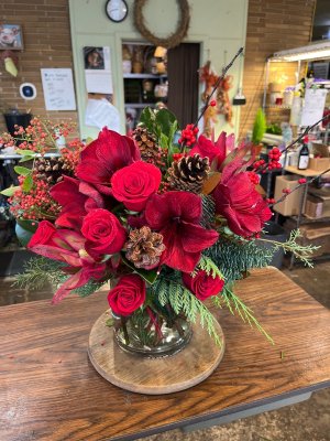 The staff did a wonderful job picking out flowers for the loss of a sweet fur baby instead of relating the arrangement to the Christmas season. We agreed it was important to maintain the delicate nature of the situation. I love the fact that George's Florist supports local animal shelters whenever you purchase this arrangement. Thank you .