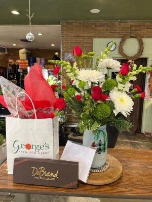 I'm not from Virginia but needed to send flowers to a Roanoke funeral home. George's was highly recommended by a local person. I am very pleased with my interaction with the business. Ordering by phone was a pleasant experience and receiving a picture of the finished arrangement was much appreciated.