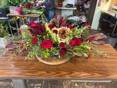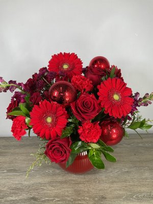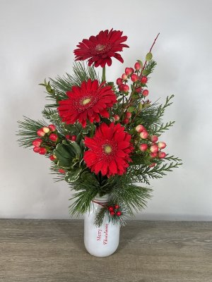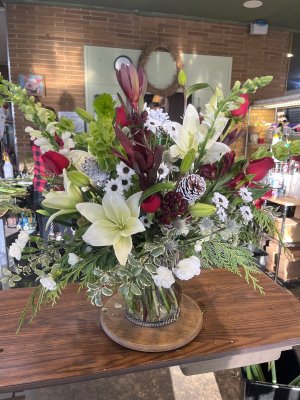 Dear George: Yes, I very much liked getting a photo of this arrangement. Also, I thought you had the best selection of Christmas arrangements on your website. However, my mother-in-law told me that her red roses didn't last more than one day. You kindly sent her another arrangement of flowers to replace her dead roses. Thank you for doing that. But in the future, please do not send her old roses that only last one day. Regards, Nancy Boitnott