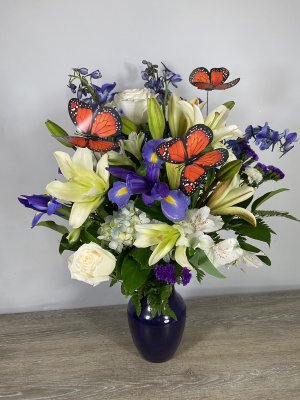 Oh, my…… I am literally holding back tears. The butterflies are so AMAZING. The arrangement is beyond words. Thank you so much for your kindness in putting in the butterflies. Georges never disappoints.