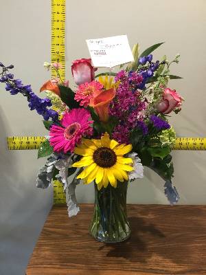 Ms. Pinotti, we are sorry that you are disappointed with your arrangement. According to the order, a seasonal vase arrangement was ordered for $70. Your floral gift was approximately 18" tall x 2... More