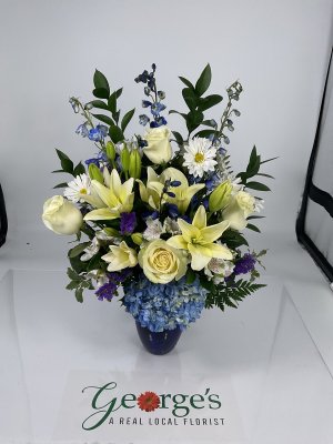 Amazing customer service and easy to get it ordered with same day delivery! They were able to create a beautiful arrangement, exactly what I was looking for. I have always loved using George's.