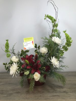 The flowers were beautiful!!! I was concerned from the text pic, the arrangement looked small. But was pleasantly surprised when I saw it. Suggestion would be to add something to show a comparable size. Thank you for your service. Ruth was very helpful!!