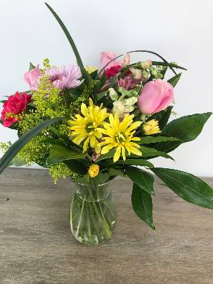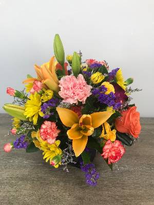 Thank you for delivering beautiful flowers. There was more greenery in arrangement but still made some one smile. Thanks again.