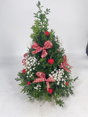 Very pretty. The plaid bows make it more country/casual than the small red ones I ordered but it is pretty with the gypsophila. I liked the photo.