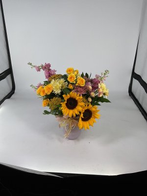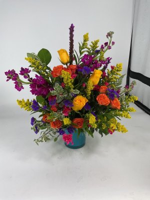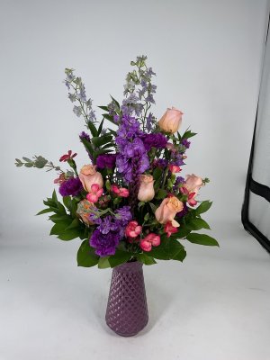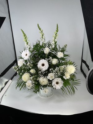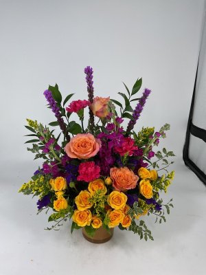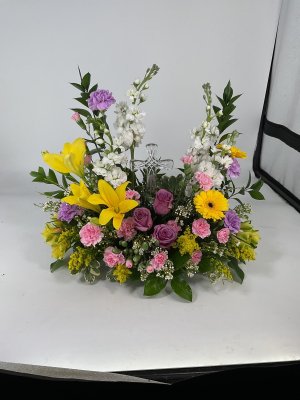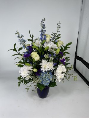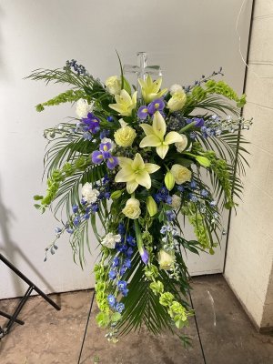 Beautiful floral arrangement that was delivered very promptly to the funeral home. Will never order flowers from anywhere but George's! Great quality and even better customer service!