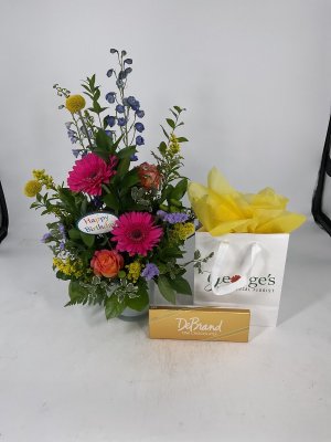 George's Flowers did an outstanding job with the arrangement and plush item. They are the best in the area.