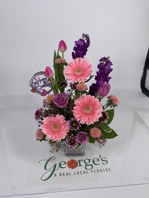 Wendy, it was a pleasure to help you find the right arrangement today and to help you add a personal touch! Thank you for 5 stars and for trusting the team at George's Flowers with your order!