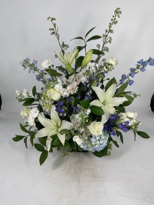 A beautiful flower layout. I really appreciate the picture before it's sent off. An animal item was not available, however, they made it right by telling me what they had in stock and everything worked out. I love the professionalism and beauty of this company.