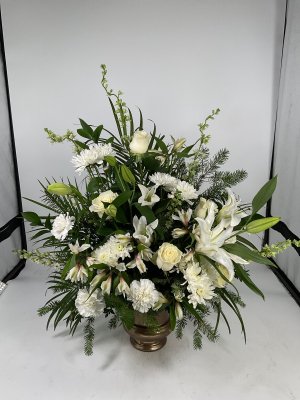 Debbie, We did have premium florals in this arrangement and went with the traditional/compact style you mentioned liking. The arrangement was filled to value. Sorry we were unable to take a different ... More
