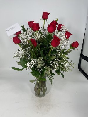 I just sent along the enclosure card to your cell phone. Feel free to message back there if you have any adjustments that are needed. We are glad you liked the arrangement, there are 36 roses, it is an all around design!