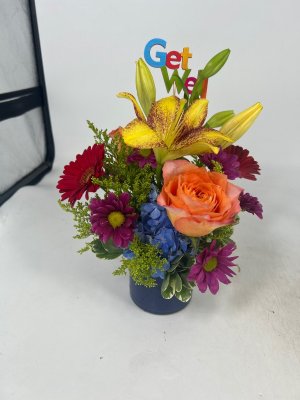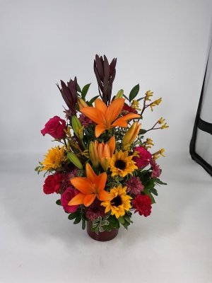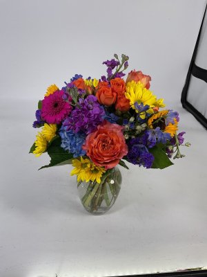 The recipient liked it so much she brought it back in to make it last even longer. Beautiful arrangement with unique flowers!
