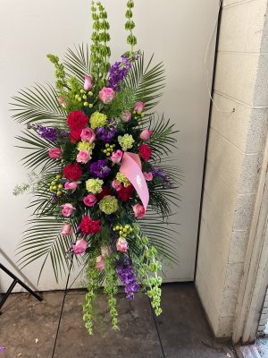 Beautiful. She would have loved the pink & the bells of Ireland. Thank you for a beautiful job.