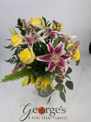 The arrangement is beautiful. Georgie's has been my go-to florist for many years and has never let me down.