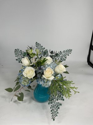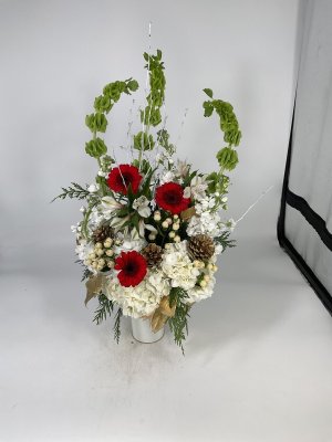 We ordered a beautiful Christmas season arrangement from George's, with red, green, and white colors and even pine cones. Nice picture too. Looking forward to hearing that the Roanoke delivery to our family was successful.