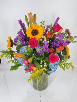 Sue, thank you very much for the kind review and 5 stars! We are so glad you love the arrangement, and we appreciate you trusting George's Flowers with your order.