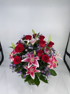 The flower arrangement was flawless. A dozen lilies and a dozen roses. They put them together perfectly. But, I asked for them to be delivered a day before Valentine's day. The receptionist messed up and made it for Valentine's day. They misspelled my girlfriend's name. Hopefully they didn't charge me a delivery fee as I came to pickup my order. Beyond that, it was good.