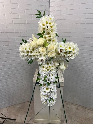 Where are the flowers and you can't see what's on the banner. Your company is a hit or miss.