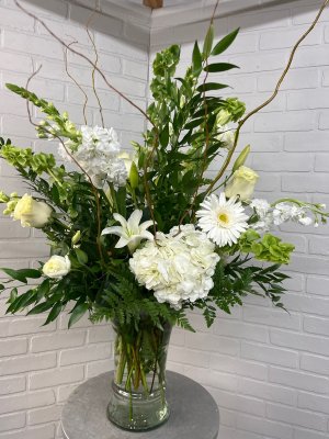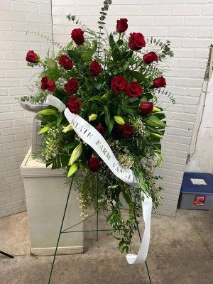 I'm quite let down by these flowers. I spent a significant amount on what essentially amounts to 27 roses. Given that it's a sympathy spray, there isn't enough time for the flowers to bloom. Among all the flowers in the room, this spray was the least impressive.