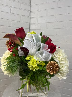 This was supposed to be a Christmas arrangement. It looks like fall. I asked for 5 red Anthuriums. We are very disappointed with this. This is not a Christmas arrangement. You should redo this.