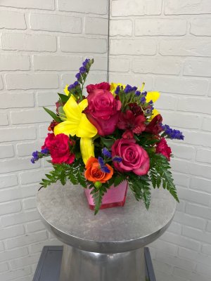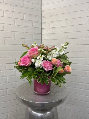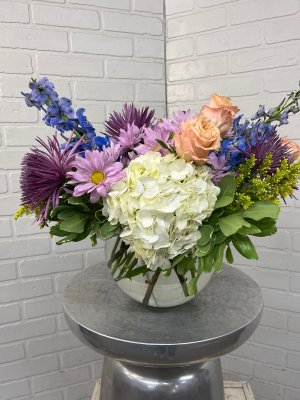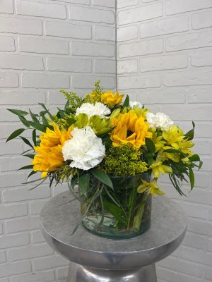 More flowers and less container! Having been a florist myself for over 20+ years I am disappointed that you are selling expensive glass containers and less floral My friend will be pleased since I remember ed her birthday but I will be looking elsewhere the next time I need flowers sent in Ft worth